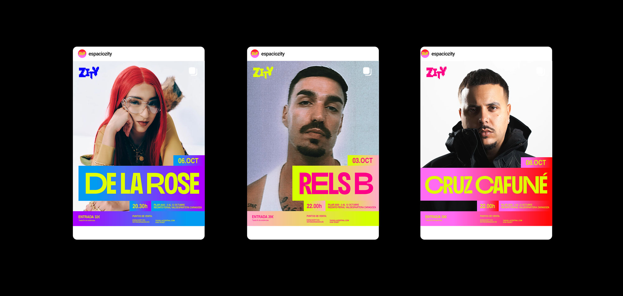 El resultado es un sistema visual versátil, enérgico, coherente y totalmente actual, diseñado para funcionar en un contexto de alta visibilidad y gran escala, y para acompañar la experiencia musical y festiva de Espacio Zity durante las Fiestas del Pilar.